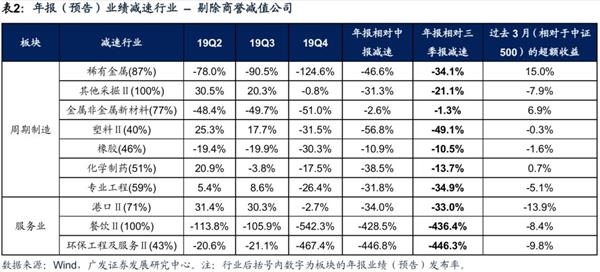 5、年报(预告)业绩减速行业:在全部A股中,剔除18年报+19年报发生商誉减值的公司(966家)后,我们筛选年报(预告)业绩增速相对于三季报和中报均减速,且年报业绩(预告)发布率在40%以上的二级行业,主要分布在:周期制造(稀有金属、其他采掘、金属非金属新材料、塑料、橡胶、化学制药、专业工程)、服务业(港口、餐饮、环保工程及服务)等领域。