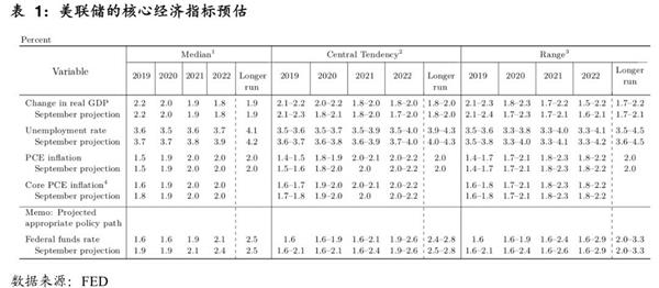 失业率和核心通胀预期都有所下调。2020年失业率从此前的3.7%下调到3.5%,并将长期的失业率水平从4.2%下调到4.1%。2019年的核心通胀从1.8%下修到1.6%,维持了其后三年的通胀预期。但是PCE物价指数和核心PCE物价指数都需要到2022年才能达到2%的通胀目标。关于通胀水平及目标,新闻发布会中讨论较多,鲍威尔强调了实现通胀目标的重要性,长期达不到目标将导致通胀预期下修,进一步压低通胀,制约货币政策空间。2021年通胀水平2%既是美联储的预期,也是一种政策的承诺,不能长期低于通胀目标。