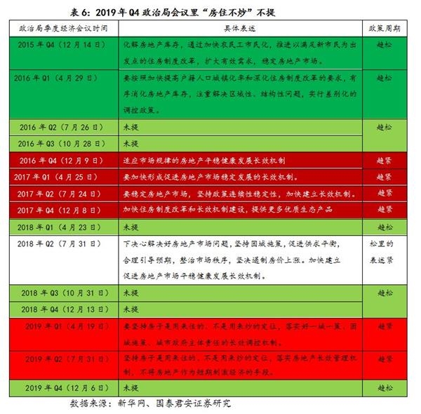 1、对2020年“逆周期”调控政策力度定调和2019年Q4政治局会议一致,低于2018年Q2-Q4政治局会议。当前进入已有逆周期调控政策的“存量优化”阶段。