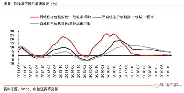 “房住不炒”,棚改退潮的影响下,各线城市房价或将继续放缓。往后看,一线城市房价已经处于较高水平,加上本身城市人口压力较大,很难在政策上做出放松,后续上涨空间十分有限,部分地区二手房价已经出现了明显的下滑。二线楼市仍将是结构分化行情,而低线城市棚改退潮的压力可能持续显现,前期透支的需求可能影响未来供需结构,三四线城市房价增速预计持续放缓。