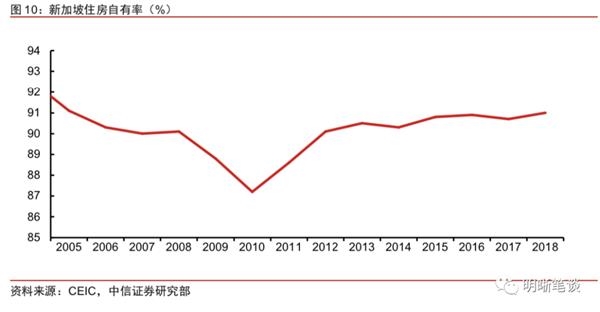 新加坡也是稳定房价的典型案例之一。新加坡的住房以组屋为主,组屋是由新加坡建屋发展局承担建筑的公共房屋,价格由政府统一规定,而且其中绝大部分属于自有产权。组屋解决了大部分新加坡人的住房问题,组屋之外的私有住宅占比非常小。组屋制度真正达到了“居者有其屋”和房住不炒的效果,在这种住房制度下,新加坡房价长期稳定,增速在0附近波动。