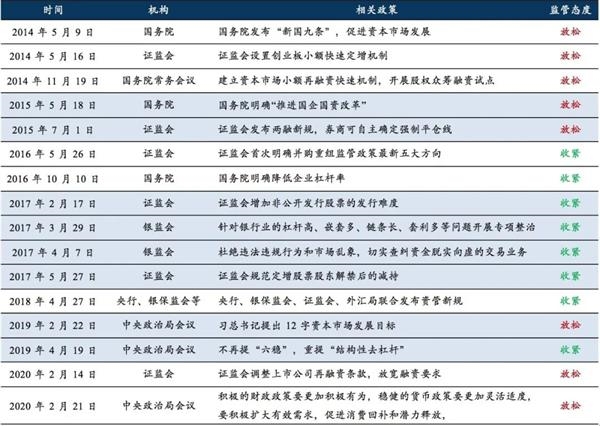 4、监管方面,2014年-2015年的监管政策从“松”到“更松”,而2020年的监管背景是从“紧”到“稍松”,并且还有一定去杠杆预期。