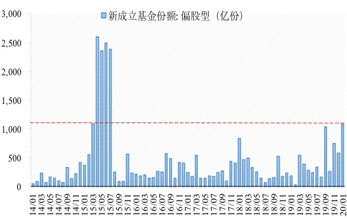 场外资金维度来看,2020年1月A股及信用账户开户数分别处于历史中枢附近和较低水平,新基金发行节奏远低于2018年的高峰。