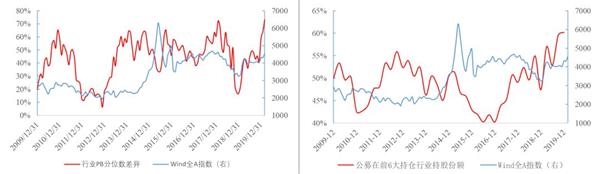 当前公募基金在持仓占比前6大行业合计持仓占其A股配置的60%,集中的持仓体现了市场对不同行业预期的显著分化——