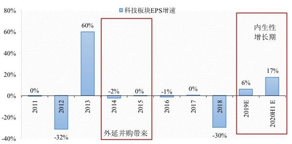 如果说2014-2015年科技板块盈利增速是“外延并购带来的泡沫”,那么2020年之后,科技板块盈利增速将会重归“内生性增长”。