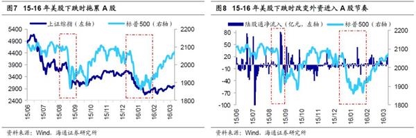 ① 2015年8月,受新兴市场货币贬值及美联储加息预期升级等多重因素叠加影响,标普500指数从15/08/18开始急速下跌至8月25日,最大跌幅11%。A股受此影响,叠加人民币贬值,上证综指从8月18日的4006点急跌至8月26日的2850点,最大跌幅29%,期间陆股通北上资金先大幅流出后转为流入。