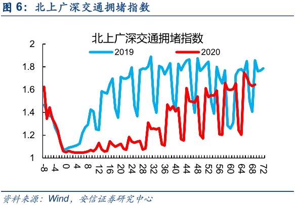 近期经济活动整体稳中有升。本周六大电厂耗煤量58.72万吨/天,环比季节性回落,同比趋稳;一线城市的交通拥堵指数持续回升至1.65,达到2019年同期水平;社会钢材库存自高位连续三周回落,降幅与去年同期相当,反映生产活动持续回升;乘用车销量连续四周低位回升,本周房地产销售回升速度趋稳,上游土地成交面积季节性回落。