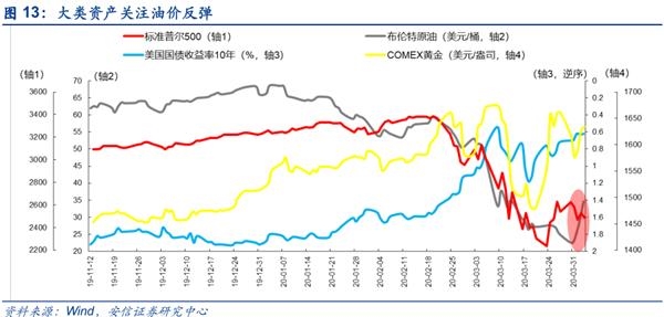 海外近期达成新一轮减产协议概率不断上升,油价低位反弹,市场情绪逐步改善。今年以来,原油价格大幅波动,2月中旬由于沙特和俄罗斯的相继宣布增产导致油价快速下跌,也成为近期全球资产价格动荡的导火索。近期伴随着需求端中国经济率先改善,供给端美国寻求推动主要产油国减产油价短期内强势反弹,WTI原油期货周涨幅达31.8%,为该合约历史上最大单周涨幅。从历史上看金油比和恐慌指数VIX往往具有较高的同步性,反映了全球投资者的恐慌情绪。该指数本周从历史极值回落,也印证了市场情绪的持续修复。