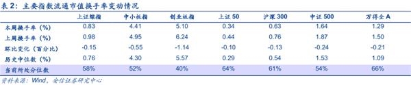 从市场层面来看,由于短期受到海外不确定性因素的影响,市场风险偏好受到抑制,活跃度与换手率也进一步下降。从换手率来看,本周主要指数换手率大幅回落,创业板换手率已经降至历史中位数以下。本周上证综指,中小板指,创业板指,上证50,沪深300,中证500,万得全A的流通市值换手率分别为0.83%,4.41%,5.1%,0.34%,0.63%,1.64%,1.29%,分别较前周下降0.15,0.55,1.14,0.1,0.13,0.24,0.21个百分点,分别处在58%,52%,40%,64%,61%,54%,66%分位数水平,大多数指数换手率回落至历史中位数水平,创业板换手率已经降至历史中位数以下。