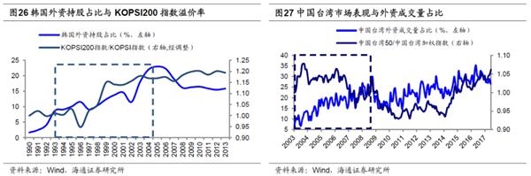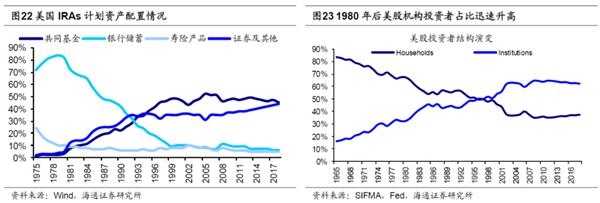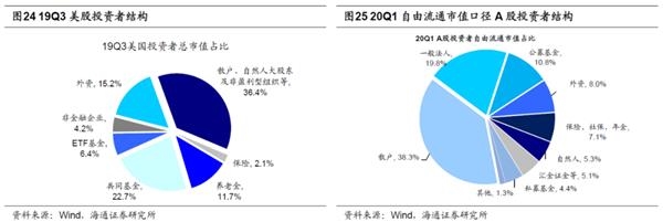 投资者结构:机构化,龙头估值溢价。从基本面看实体经济中产业集中度持续上升,龙头企业保持了较好的盈利状况;另一方面A股市场的投资者结构变化,也对风格产生了新影响。机构投资者占比提升过程中,龙头估值也往往出现溢价。前期报告《我们终将俯瞰现在——再论当前中国类似1980年代美国-20191217》研究过,1980年代美国股权投融资大发展催生了股市长牛,整个社会非金融企业融资结构中股权融资的占比因而从1985年的35%上升至2000年的60%。与此同时,以养老金为代表的长线资金也在1980年前后大量进入股市。美国个人退休金账户(即 IRAs 计划)及401K的推出使得美国养老金规模快速上升,养老金入市的比例也随之提高。大量长线资金入市一方面使得美股中机构投资者的占比从1970年的20%快速上升至2000年的63%。我国目前的经济状况正如同1980年代的美国一样处在经济转型期,股权融资还亟待发展,“深化金融供给侧结构性改革”预示着我国也将像美国一样将进入股权融资大时代。从股市的资金供给端看,未来居民和机构的大类资产配置都将偏向权益。居民方面,2018年我国居民资产中房地产占比为70%,固收类占比27%,股票和基金配置比例仅为3%,而同期美国居民配置地产、固收类、股票和基金的比例为27%、40%、33%,随着我国人口老龄化,地产投资属性弱化,未来居民资产配置将从地产转向股票。机构方面,过去刚兑的存在使得我国非标资产的性价比比权益资产更高,因此险资和理财资金均配置了大量非标资产来拉动组合的收益率。但是未来金融供给侧改革大背景下刚兑信仰将被打破,一方面非标资产的高性价比将难以为继,另一方面无风险利率下行将抬升金融资产的估值。综合来看权益资产性价比上升,机构权益配置比例上升,也将提高龙头溢价。这一趋势在中国台湾、韩国股市对外开放过程中都有体现。参考韩国、中国台湾的历史经验,韩国外资持股占比提升最快的时期是1997-2005年,这时期韩国外资持股占比从9%提高到23%。在韩国外资持股比例不断上升的时期,KOSPI200指数(韩国大盘蓝筹指数)/KOSPI指数的相对溢价从1.0提高到1.2,说明在外资持股占比提升过程中,大盘蓝筹股代表的行业龙头始终表现较好。从中国台湾经验来看,2003-2008年期间中国台湾外资持股比例从11%提高到25.8%,外资成交额占比从13.8%提高到约30%,这时期内代表大盘蓝筹股的台湾50指数相对于台湾加权指数溢价率在1以上,台湾50指数表现相对较强。边际增量资金影响市场风格,相对于散户,机构投资者投资行为更加理性,更偏好低估值、大市值的龙头企业,机构投资持股占比提高强化了龙头股效应。