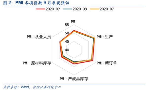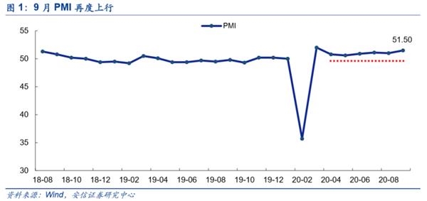经济复苏仍在深化,近期公布的经济数据和国庆期间消费、旅游数据显示经济复苏仍在持续。9月PMI升至51.5%,达到4月以来最高水平,其中PMI生产指数达54.0%,PMI新订单指数达52.8%, 9月经济旺季、基建地产投资、国内疫情的良好控制、长假预期带来的提前采购可能共同催生了9月靓丽的经济数据。