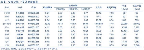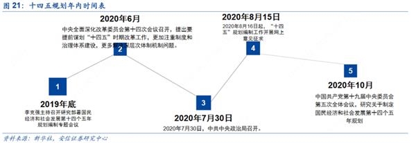 “十四五”规划相关领域十月的关注重点。10月是“政策大月”,党内重要会议往往选择10月召开,在今年10月召开的第十九届五中会议将研究关于制定国民经济和社会发展第十四个五年规划,预计将提出建议稿。“十四五”是全面完成小康社会建设战略目标,向全面实现社会主义现代化迈进承上启下的关键时期,将对中国经济和A股市场中期发展带来重要影响。