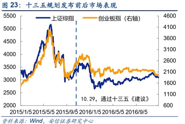 短期影响看,在十二五规划建议稿和十三五规划建议稿公布前后,相关领域细分均有明显的上涨。不同于以往的规划,“十四五”规划可能会淡化经济增长、总量目标等,更加追求经济高质量发展。我们预计“双循环”新发展格局将成为“十四五规划”的关键政策指引,自主可控、扩大优势、新基建、高端消费、消费升级、国防军工、能源安全、粮食安全、资本市场改革九大受益方向的投资机会,预计促成“双循环”新发展格局的更好形成也会伴随着一系列改革的加速设计与推进,如收入分配改革、财税改革、金融供给侧改革等。